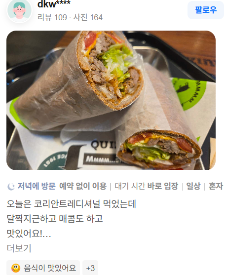 • “빵이 바삭하고 속재료가 풍부하다”