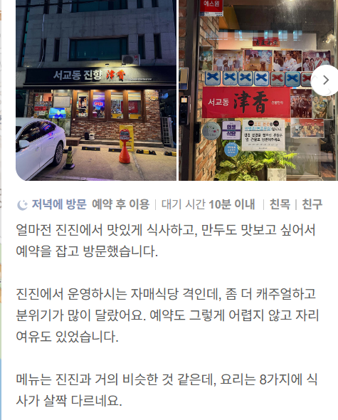 서교동 진향 고객 리뷰 요약